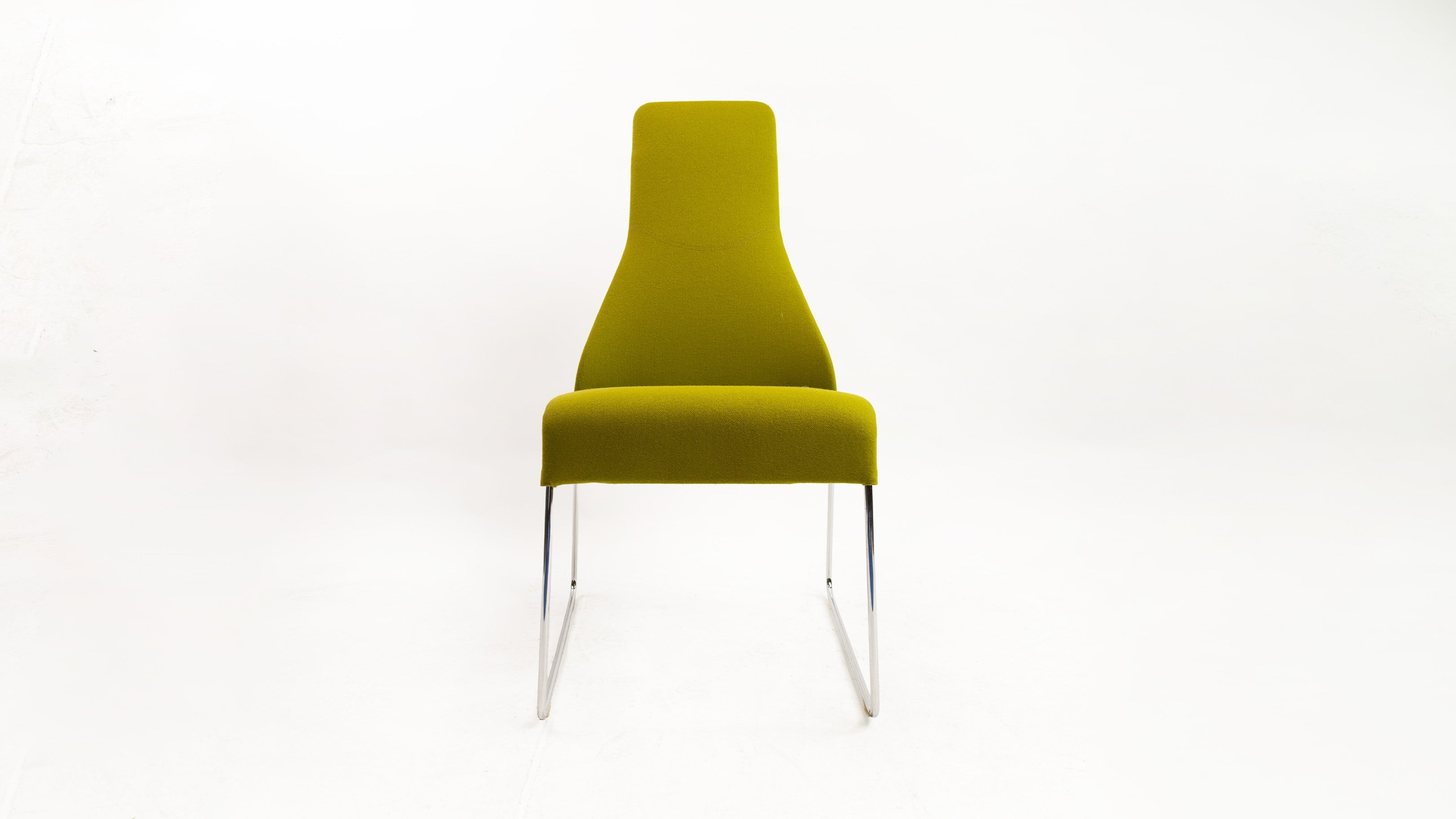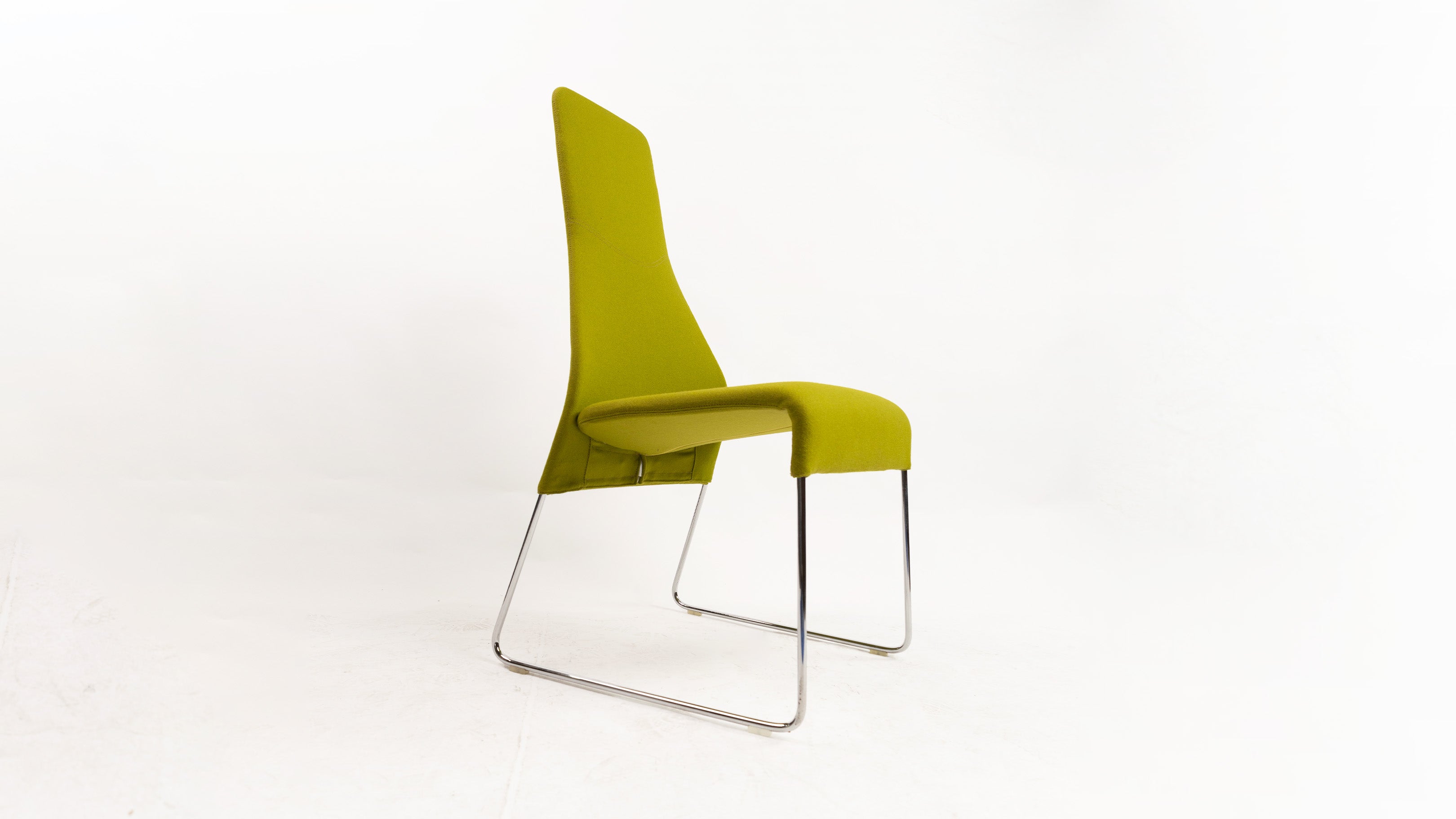 The Lazy 05 Chair by Patricia Urquiola is a chic blend of contemporary design and comfort, featuring an eye-catching olive green upholstery. With a sleek chromed steel frame, this chair offers both durability and a minimalist aesthetic, perfect for modern interiors. Its high backrest ensures superior comfort and support, making it ideal for long hours of sitting. The chair's removable cover, secured with convenient zipper or Velcro fastenings, allows for easy maintenance and customization. This striking green chair is not just a seating solution but a bold statement piece for any room.